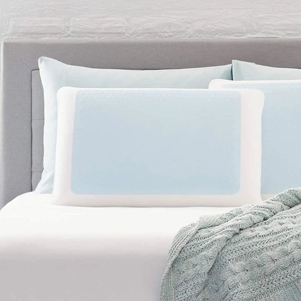 Almohada de 60x40x12 cm con núcleo de espuma y capa de Gel Block refrescante, diseñada para disipar el calor y ofrecer un soporte firme y fresco durante toda la noche.