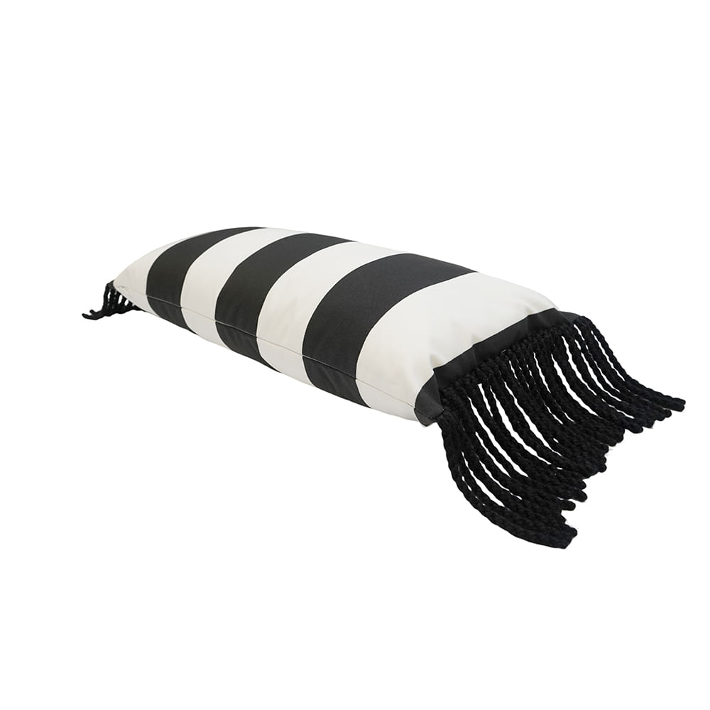 Cojin Dulce Limonta Rayas Negro Flecos Negros 60X30Cm