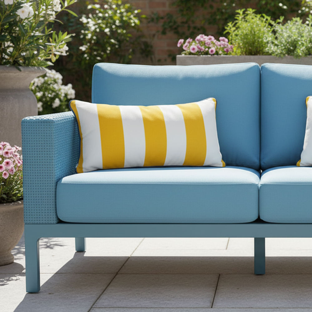 Cojín con diseño de rayas en amarillo vibrante, ideal para añadir color y estilo a tus espacios exteriores.