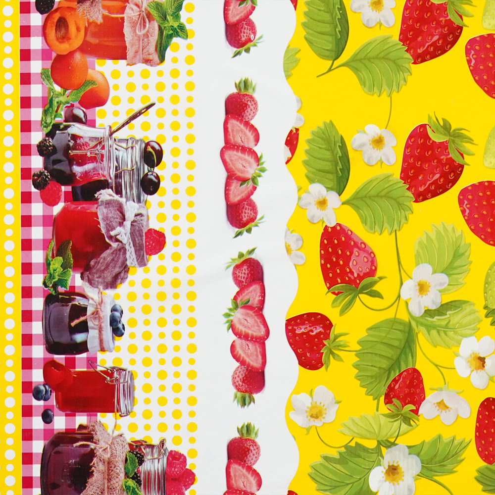 PLASTICOS, MALLAS Y EMBALAJESPLASTICOSCUBREMESASCubremesa Plain Pvc Fresas Amarillo