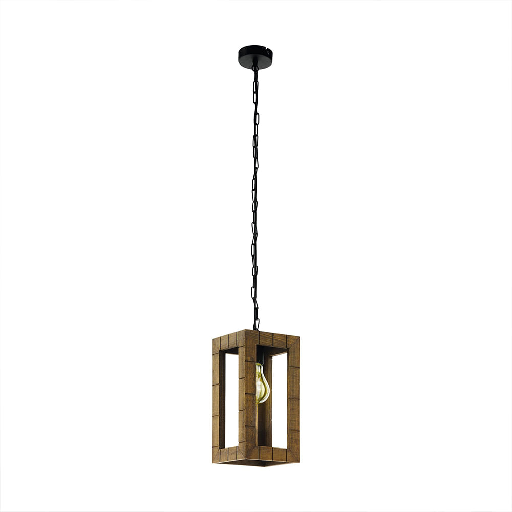 Lámpara colgante con cuerpo de madera y portalámparas metálico negro, estilo vintage acogedor y E27. Ideal para mesas, salones o pasillos. (Eglo)