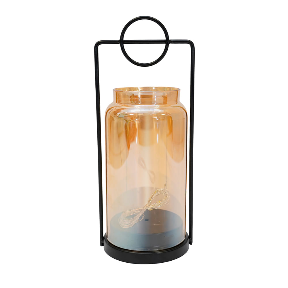 Farol Metal Vidrio C/Luz Led 11X11X29Cm Dorado C/Negro (Bd007-S)