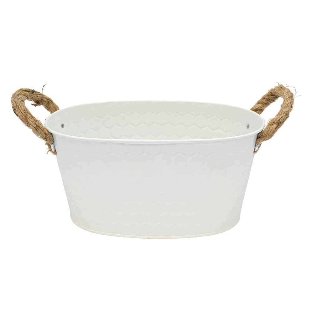 Macetero Metal Asas Cuerda M 20X13X9.5Cm Blanco (Reg12-070A)