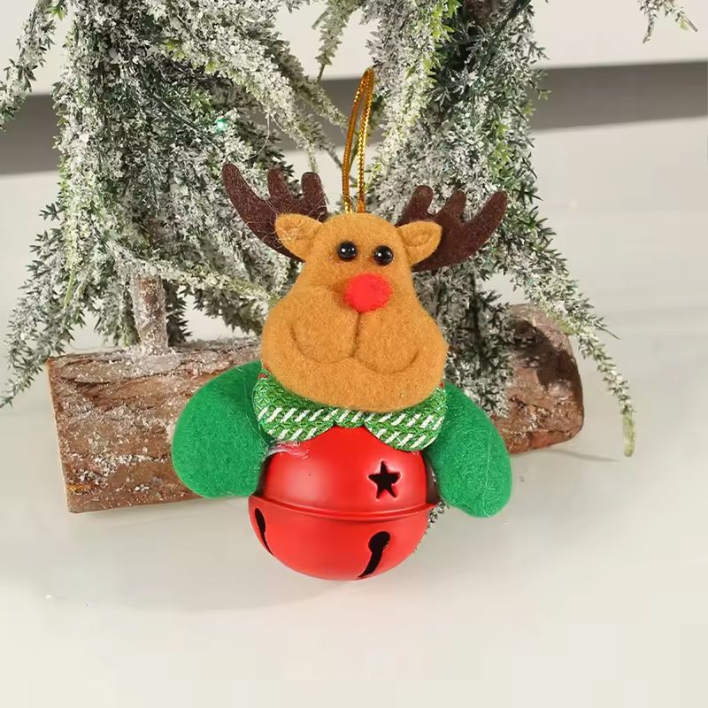 Adorno para árbol con forma de campana y motivo de reno, en rojo y verde, de 10x7 cm. Sonido y color para tu árbol.