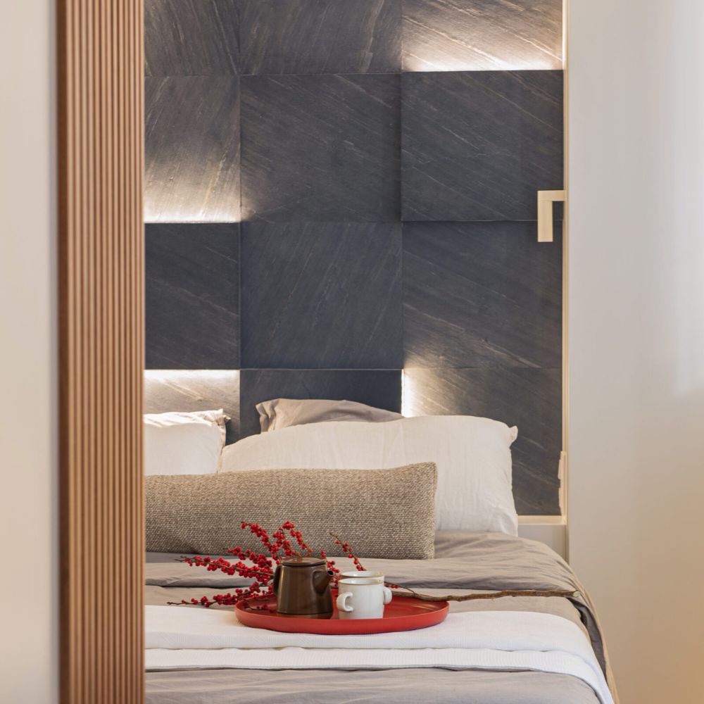 Revestimiento exclusivo de la marca Stoneflex compuesto por una delgada capa de piedra natural sobre un soporte flexible. Es liviano, fácil de instalar y se adapta a superficies planas o curvas. Ideal para renovar mobiliario y paredes interiores y exteriores, brindando un acabado elegante, moderno y natural con la durabilidad de la piedra auténtica.
