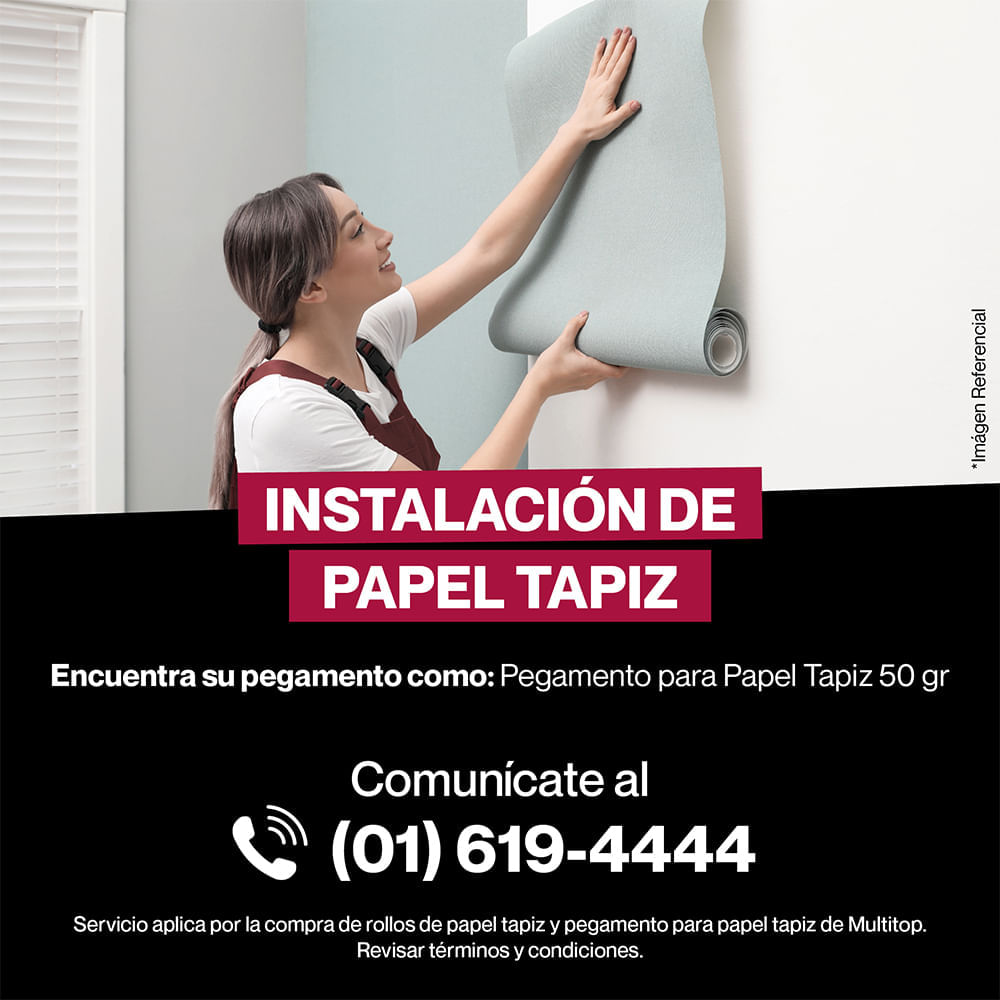 Antes de instalar el papel tapiz, la pared a tapizar debe estar limpia (sin manchas), lisa, lijada y sellada. No se puede instalar el papel tapiz en paredes de cemento (sin lijar), pared de ladrillo y pared húmeda. En caso de que la pared para tapizar tenga instalado un papel tapiz anterior, el cliente debe retirarlo para proceder con la instalación del nuevo papel tapiz. Para proceder con la instalación, dibuje una línea. Aplique el pegamento para papel tapiz en la pared, extendiéndola uniformemente con una brocha, cubriendo un poco más del ancho del papel tapiz a instalar. Coloque el papel tapiz verticalmente, haga coincidir el patrón y presione contra la pared previamente preparada con pegamento. Recorte por arriba y por abajo, no doble. Retire el exceso de pasta. No se recomienda abrir puertas o ventanas para acelerar el secado.
