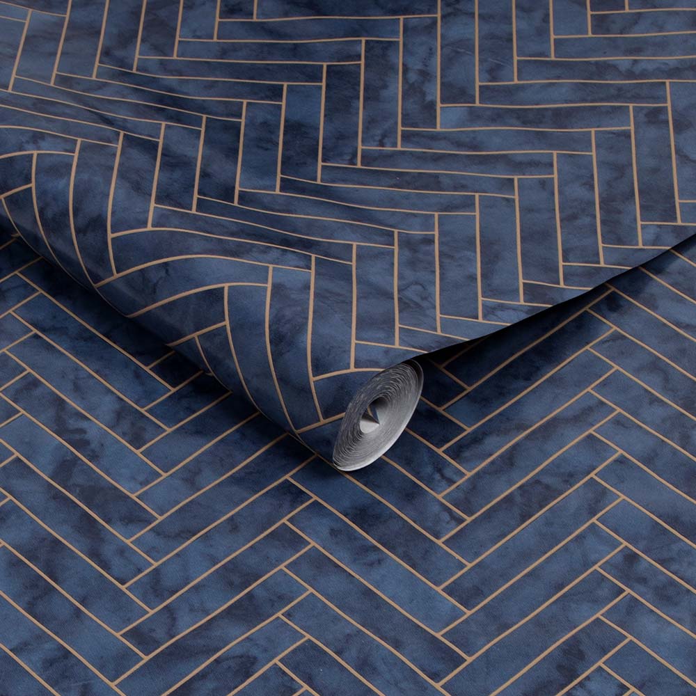 PAPEL TAPIZ OASIS MARBLE CHEVRON TILE 0.52X10 MTS NAVY