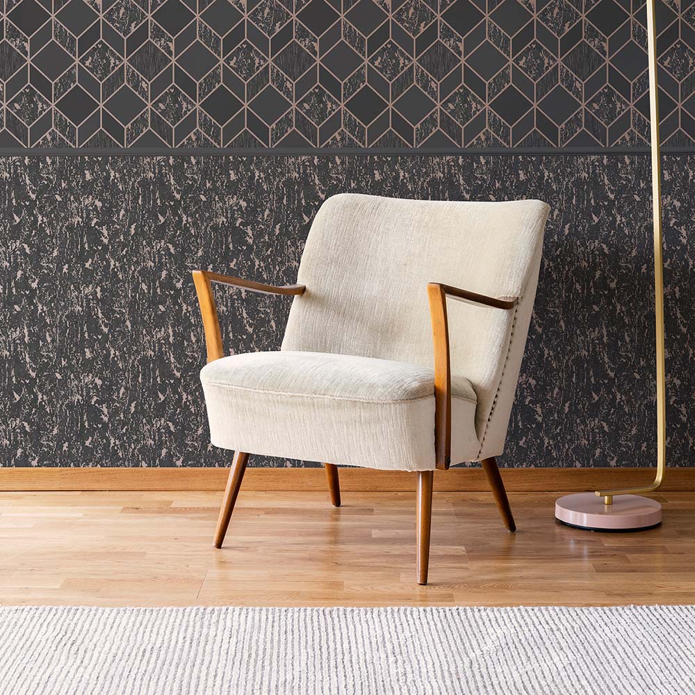 PAPEL TAPIZ VITTORIO MILAN 0.52X10 MTS CHARCOAL/ROSE GOLD