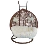 El refugio perfecto en casa. Silla colgante doble en elegante tono chocolate, diseñada para ofrecer confort compartido y un toque de lujo a tu terraza o jardín.