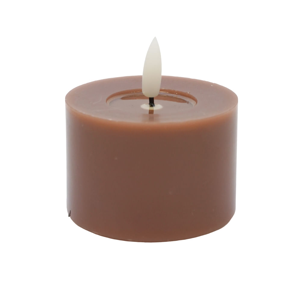 Vela LED pequeña en marrón, calidez compacta para crear puntos de luz acogedores.